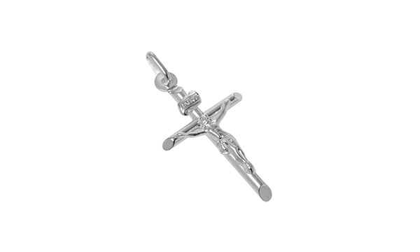 Crafted in real silver, this is a very popular crucifix pendant. The simple lines of the cross and flowing features of the corpus, provide a strong symbol of faith and love of the lord.