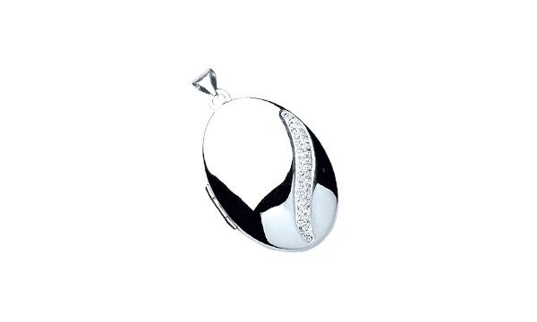 REAL SILVER & CRYSTAL OVAL LOCKET & CHAIN PCS00084