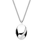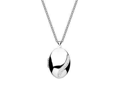 A classic oval shaped locket, with a makeover in the form of a wave design, embedded with thirty-six sparkling white crystals.