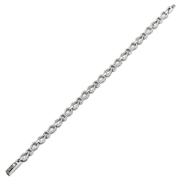 Showcasing this wonderful real silver bracelet, from the Bonita collection, which has a delicate and feminine loop design, with three hundred and six sparkling round cubic zirconia’s of the finest quality, to recreate the look and sparkle of real flawless diamonds at a fraction of the price.