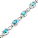 This stunning art deco style bracelet is crafted from real silver. Nine clusters, set with sparkling white and light aquamarine blue cubic Zirconia’s, make this bracelet one of the ‘must have’ pieces from the Bonita Jewels collection.