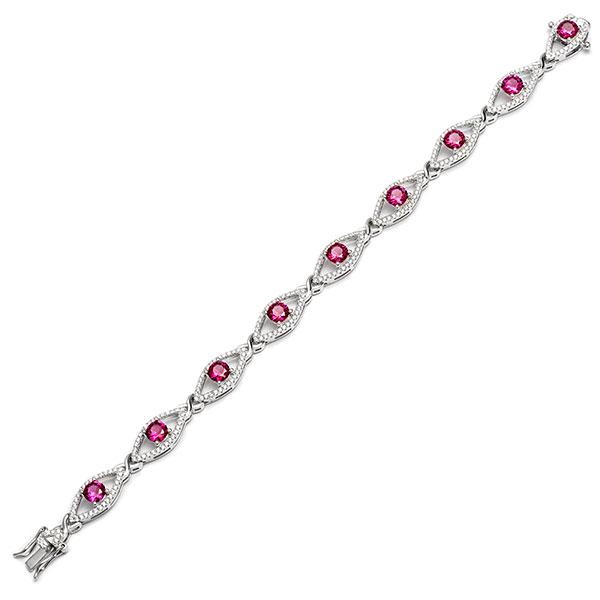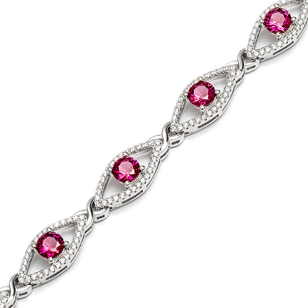 A gorgeous, modern style bracelet from the Bonita Jewels collection, that is sure to turn heads with admiring glances. Crafted from real silver into nine marquise shaped clusters, set with sparkling white and ruby red cubic Zirconia’s. Each cluster is linked with a captivating highly polished feminine and romantic kiss link.