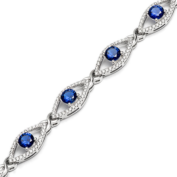 A gorgeous, modern style bracelet from the Bonita Jewels collection, that is sure to turn heads with admiring glances. Crafted from real silver into nine marquise shaped clusters, set with sparkling white and royal sapphire blue cubic Zirconia’s. Each cluster is linked with a captivating highly polished feminine and romantic kiss link.