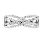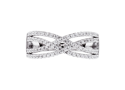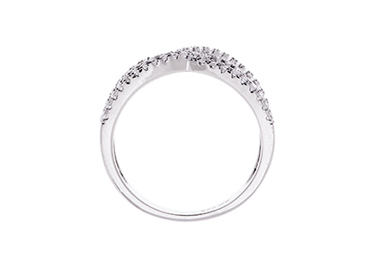 An elegant 925 real silver dress ring from the Bonita jewels collection, set with seventy-eight top quality, round sparkling brilliant cut cubic zirconia in a stylish four strand crossover design, polished to the highest standard and finished with an anti tarnish rhodium finish.