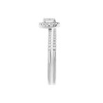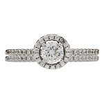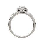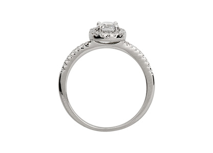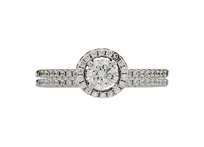 One modern style halo ring set with a single white cubic Zirconia, surrounded by more sparkling white cubic Zirconia’s leading on to each shoulder, and one ring set with a single row of white matching cubic Zirconia’s, made to fit together under the top of the other with no gap.