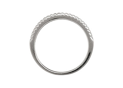 The band width measures approximately 3.7mm to the stone set front, the underneath of the band tapers off to approximately 2.8mm, with a smooth and highly polished anti tarnish rhodium finish, which allows for a comfortable fit when worn.