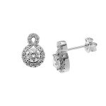 The main part of these stunning sterling silver earrings are set with a single, round brilliant cut cubic zirconia, encased with a further twenty-two stones leading to the top loop. Finished to the highest standard using cubic zirconia’s of the finest quality to recreate the look and sparkle of real flawless diamonds, at a fraction of the price.