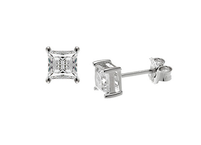A classic from The Bonita Jewels Collection, these square princess cut sparkling white cubic zirconia earrings are set with four claws.