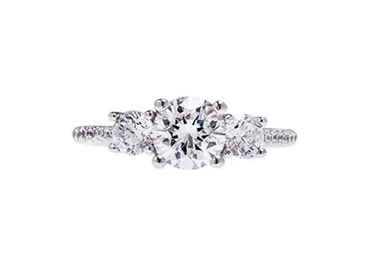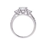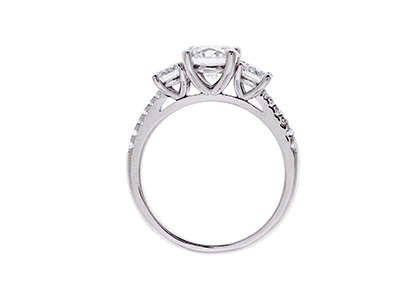 A sophisticated 925 real silver dress ring from the Bonita collection, with three main graduated top quality, round, sparkling, brilliant cut, white cubic zirconia on top and a further six cubic zirconia set on each shoulder in a stylish V shape setting. Polished to the highest standard with an anti tarnish rhodium finish.