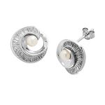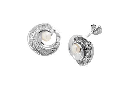 Beautiful and bold, these earrings are set with real cultured pearls and finished to a very high standard. Highly polished on the back and edges and complimented with a contrasting matt line engraved centre.