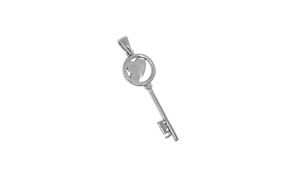 The ultimate pendant for the one you love. A gorgeous key pendant encrusted beautifully sculpted with intricate detail in real silver, with two sweet little gilt hearts in the top bow and I.L.Y. carved to the bottom bit.