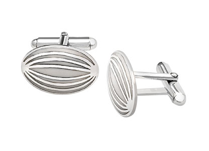 These classic oval shaped cufflinks, slightly domed and inlaid with white cloisonné enamel evokes the style of todays modern city gent.