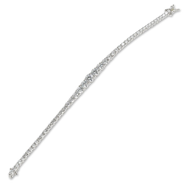 This elegant graduated eternity tennis bracelet is crafted in real silver, with each cubic zirconia individually set in a four claw section and linked to each other,allowing a continuous uninterrupted smooth flowing movement.