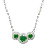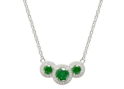 This stunning real silver necklace will look fabulous with your favourite party dress. Boasting three beautiful and eye-catching round clusters, set in elegant mill-grain settings, brought to life with a halo of glittering, brilliant cut white Cubic Zirconia stones, set around the edge of three larger gorgeous emerald green round Cubic Zirconia. Designed to sparkle like real flawless diamonds, this show-stopping necklace is just the thing to add a sparkling finishing touch to your look.