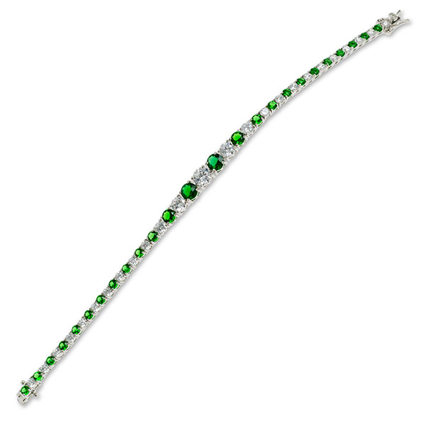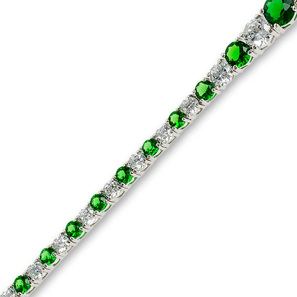 This elegant graduated eternity tennis bracelet is crafted in real silver, with alternating green and white cubic zirconia each individually set in a four claw section and linked to each other, allowing a continuous uninterrupted smooth flowing movement.