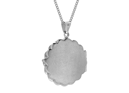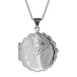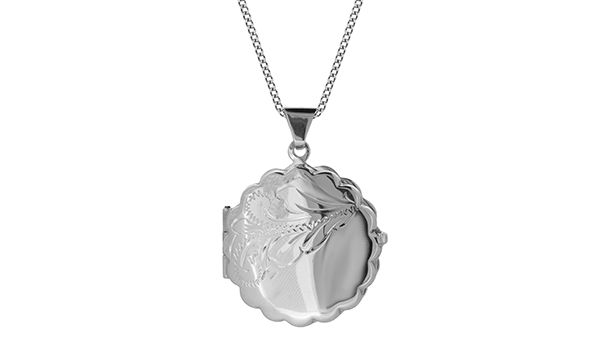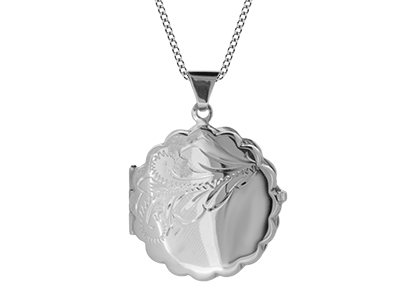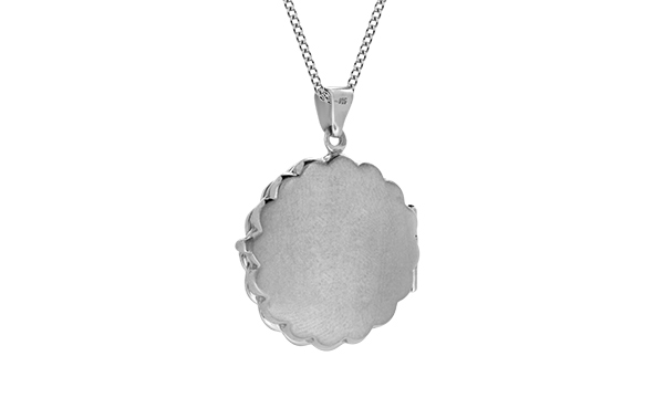 This gorgeous pendant is infused with the romance of a by-gone era with it’s scalloped edge and hand engraved scroll pattern it is ideal for injecting an elegant and timeless touch of vintage-inspired style to your look, the perfect locket to keep a photo of a loved one inside, a keepsake for your special memories.