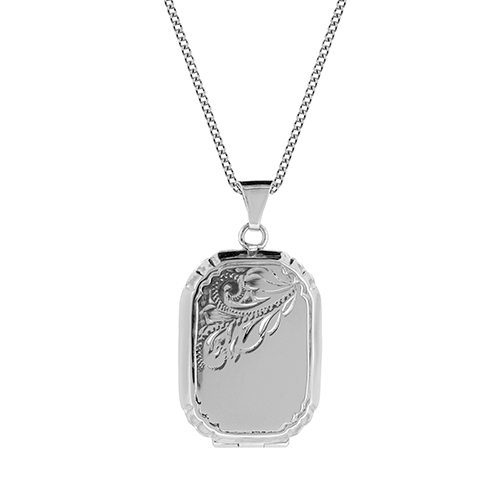 A classic design. Crafted in 925 silver this octagonal locket holds 2 photos and exudes vintage charm. Perfectly box, it makes an elegant gift.