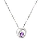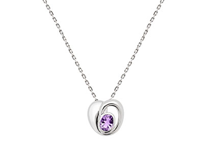A sophisticated, modern, rounded heart style pendant, sculpted in real silver with a highly polished finish, encapsulating a stunning oval checker cut purple amethyst, in a secure rub over setting.
