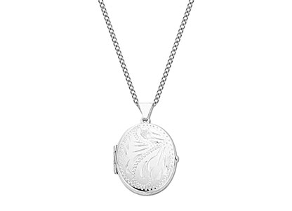 A classic Victorian style oval shaped locket, with a beautiful scroll engraving to the front,the back has a brushed matt finish, which can be engraved if desired.