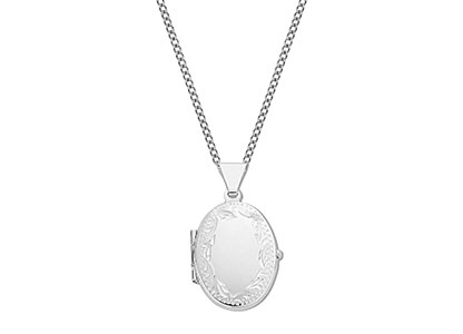 A classic Victorian style oval shaped locket, with a beautiful engraved leaf pattern border to the front.