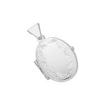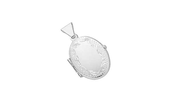A classic Victorian style oval shaped locket, with a beautiful engraved leaf pattern border to the front.