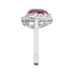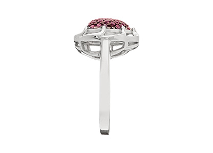 Feminine and very romantic, this captivating gorgeous heart shaped ring from the Bonita Jewels Collection, features fifty-five pave set, ruby red cubic zirconia’s, with a black rhodium around the stones to the settings.  An eye-catching design that will make the perfect gift for the one you love, whatever the occasion.