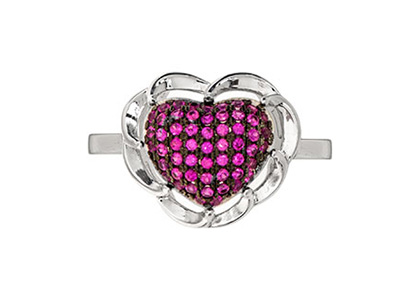 REAL SILVER RED CUBIC HEART RING RS00010