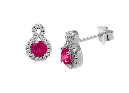 Sophisticated and elegant, round double hallo style earrings from The Bonita Jewels Collection, the must-have trend of the season. The main part of these stunning sterling silver studs are set with a single, round, brilliant cut, ruby red cubic zirconia, encased with a further twenty-two white cubic Zirconia in each earring.