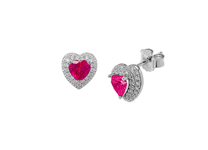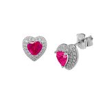 These stunning real silver stud earrings from the Bonita Jewels Collection, are set with a ruby red heart shape cubic zirconia to the front and encrusted with two rows of round sparkling white brilliant cut cubic zirconia’s, creating a dramatic effect.