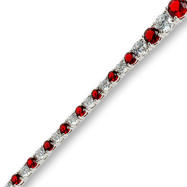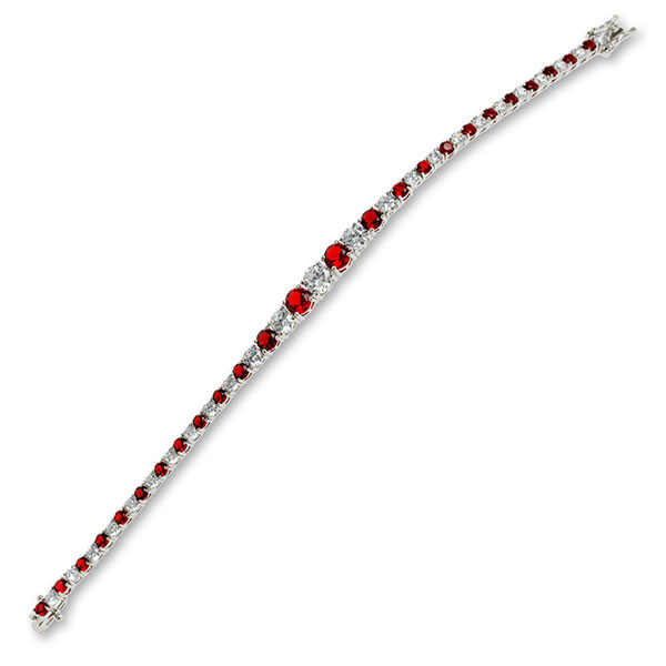 This elegant graduated eternity tennis bracelet is crafted in real silver, with alternating red and white cubic zirconia each individually set in a four claw section and linked to each other, allowing a continuous uninterrupted smooth flowing movement.