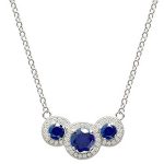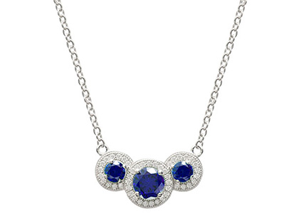 This stunning real silver necklace will look fabulous with your favourite party dress.  Boasting three beautiful and eye-catching round clusters, set in elegant milgrain settings, brought to life with a halo of glittering, brilliant cut white Cubic Zirconia stones, set around the edge of three larger gorgeous sapphire blue round Cubic Zirconia.  Designed to sparkle like real flawless diamonds, this show-stopping necklace is just the thing to add a sparkling finishing touch to your look.