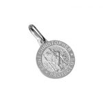 This lovely round saint Christopher charm is made in Italy. The front has a matt finish with a contrasting plain diamond cutting around the border to give a smart crisp polished finish to the edge of the pendant, engraved with the words ( saint Christopher protect us).