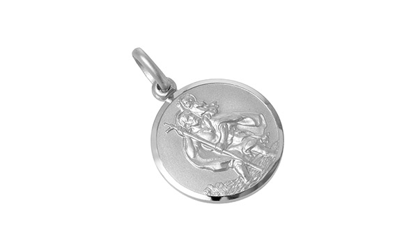 This lovely round saint Christopher pendant is made in Italy. The front has a matt finish with a contrasting plain diamond cutting around the border to give a smart crisp polished finish to the edge of the pendant.