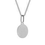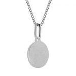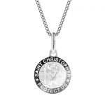This lovely round saint Christopher pendant is made in Italy. The front has a matt finish with a contrasting plain diamond cutting around the border to give a smart crisp polished finish to the edge of the pendant, engraved with the words ( saint Christopher protect us).