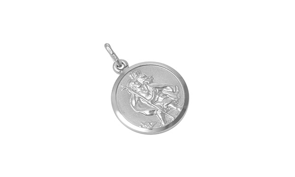 This lovely round saint Christopher pendant is made in Italy. The front has a matt finish with a contrasting plain diamond cutting around the border to give a smart crisp polished finish to the edge of the pendant.