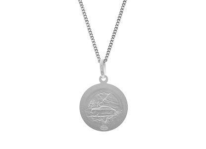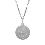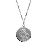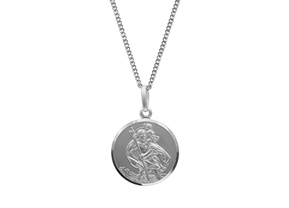 This lovely round saint Christopher pendant is made in Italy. The front has a matt finish with a contrasting plain diamond cutting around the border to give a smart crisp polished finish to the edge of the pendant.
