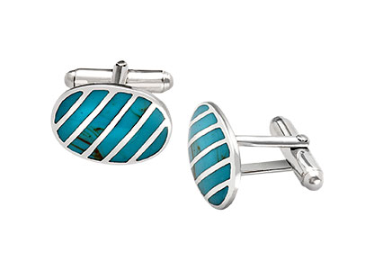 These classic oval shaped cufflinks slightly domed and inlaid with Turquoise evokes the style of todays modern city gent. Silver Men’s cufflinks speak volumes when it comes to a smart impressive look.