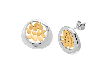 This unusual and gorgeous design is inspired by the scattered leaves of the autumn fall. The leaves are depicted with a subtle vermeil matt finish, surrounded by a contrasting smooth highly polished silver frame.