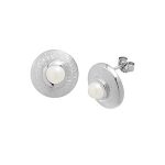 These sophisticated desirable stud earrings are elegant and lovingly crafted in real silver, with a matt finish and  contrasting highly polished edges, set with a beautiful  snow white cultured pearl. These stylish modern earrings will make a great addition to your collection.