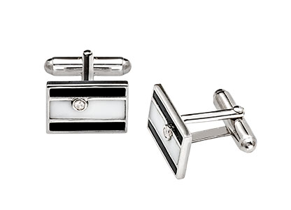 For something unusual, be noticed with these rectangular cufflinks, offering a white centre and a black onyx top and bottom, complimented with a single brilliant cut cubic zirconia set on the top, both modern and elegant, ideal for that special gift, or why not treat yourself.