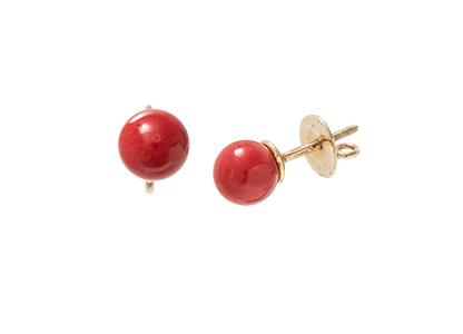 These gorgeous red coral ball stud earrings are hand made in a rose colour metal, foreign markings 585, probably made in Russia.