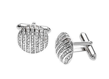 Round Silver Cufflinks Cubic-Zirconia CK00034.