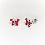 Crafted in 18ct white Gold and set with twelve gorgeous rich Pidgeon blood red rubies to the wings. Ideal for showing off your fun side, these stunning delicate butterfly earrings will add a feminine warm touch to your outfit and make you feel great every time you wear them, in fact you probably won’t want to take them off, unless its to change them for the sapphire ones or perhaps the emerald version or one of the many other colour stones we have in this collection.