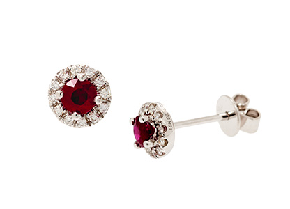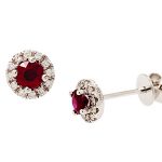 City of London Jewellers Present 18ct White Gold Ruby and Diamond Round Cluster Stud Earrings ESA0428.