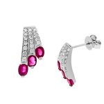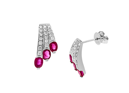 City of London Jewellers present these gorgeous 18ct White Gold Ruby & Diamond Stud Earrings each Set with Three graduated rows of diamonds cascading to three gorgeous red oval rubies.