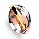 Rose Gold, also known as Pink or Red Gold, is a stunning choice. Additionally, some call it a Multi Colour Gold roll over ring.