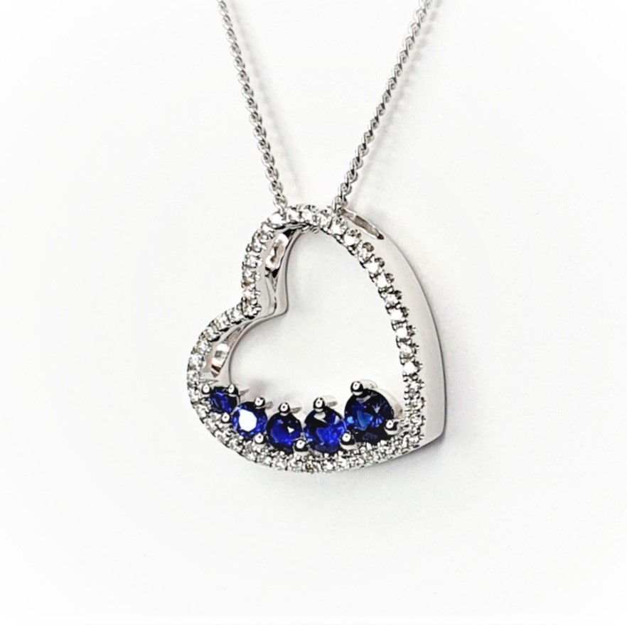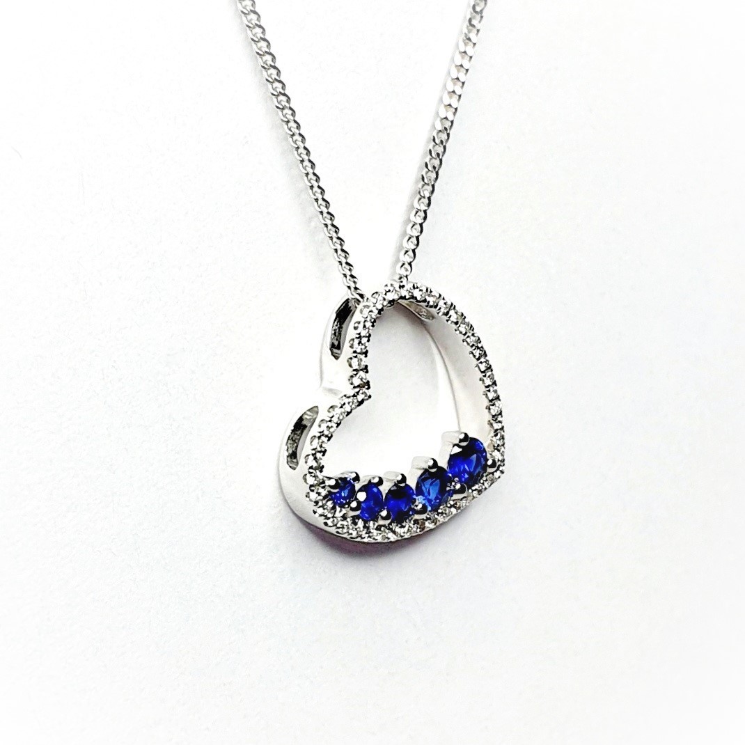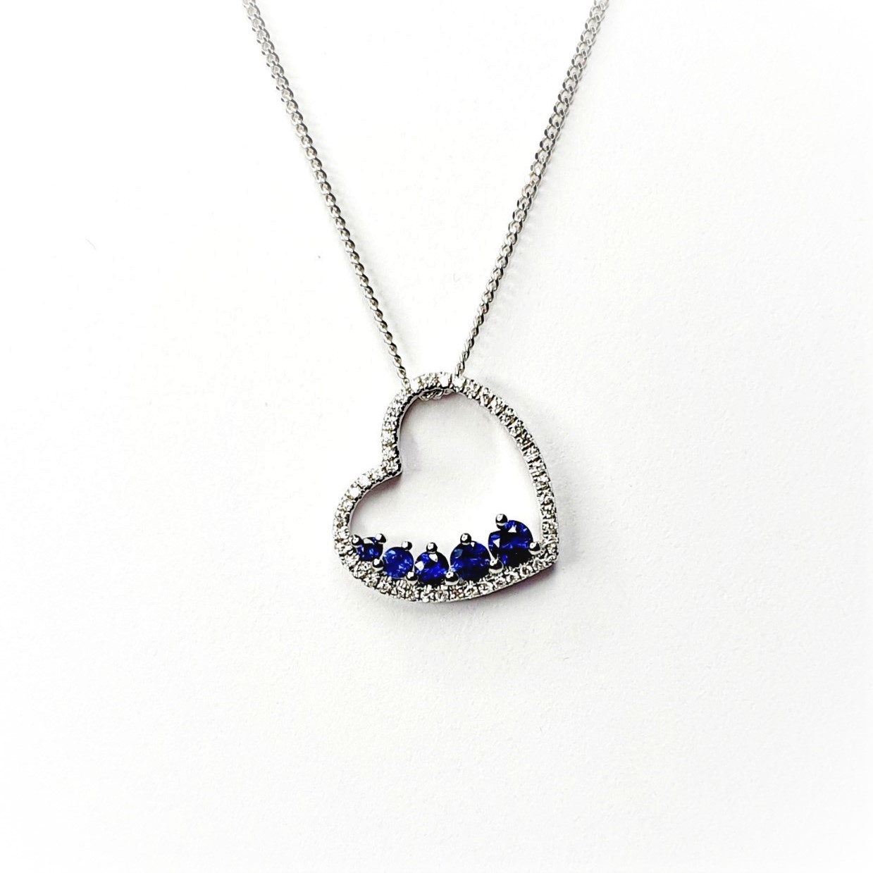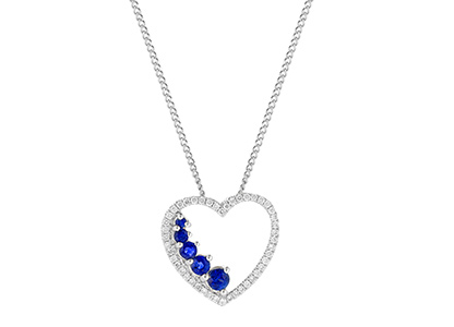 City of London Jewellers present this stunning Sapphire & Diamond Heart Necklace PCA00393.