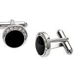 REAL SILVER & BLACK ONYX CUFFLINKS WITH CUBIC ZIRCONIA UNISEX CK00006.