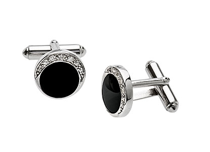 Silver Cufflinks Onyx & Cubic Zirconia CK00006.