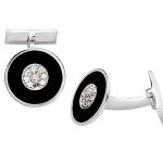 REAL STERLING SILVER BLACK ENAMEL CUFFLINKS WITH WHITE CUBIC ZIRCONIA’S CK00100.